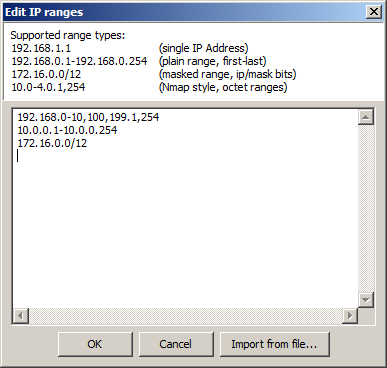 - [Import from file...] - позволяет импортировать диапазоны из текстового файла.