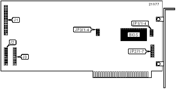 Note: To install XEBEC 1210c on your system, access the Drive Type Table that corresponds to your on-board BIOS and select your drive type. Set drive type jumpers JP3/1-JP3/4 as indicated and use the ROM address to access the BIOS Address Selection Table. JP2/1-JP2/7 jumpers should be set according to this table. Note: Drives with IBM or Xebec formats use DOS FDISK.COM to set up partitions and DOS FORMAT.COM to initialize directories & create boot tracks. To format drives with no low level format, run IBM’s adv. Diag. Program option 17 or a Menu Program accessible through DOS DEBUG.COM (available for BIOS types 104959 and 102168). If DEBUG.COM is selected, use drive type characteristics to select a ROM address from the tables. Set JP2 to reflect this address and at the hyphen prompt, enter "-g= ‘ROM address’" |