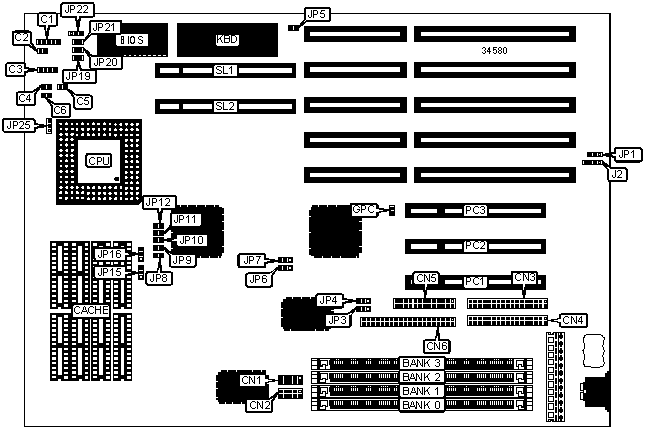 Note: The location of all factory configured jumpers except for JP15 & JP16 are unidentified.