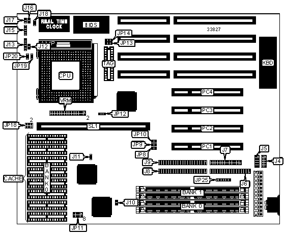 Note: Board accepts EDO memory. Board also accepts x 32 SIMMs.