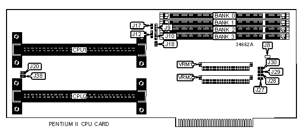 A diagram & jumper settings for the Pentium Pro CPU card is unidentified. |