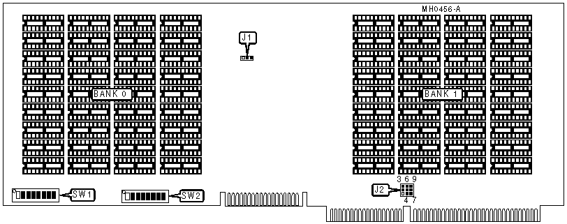Note:Location of banks 0 & 1 unidentified. Memory chips are unidentified. | ||