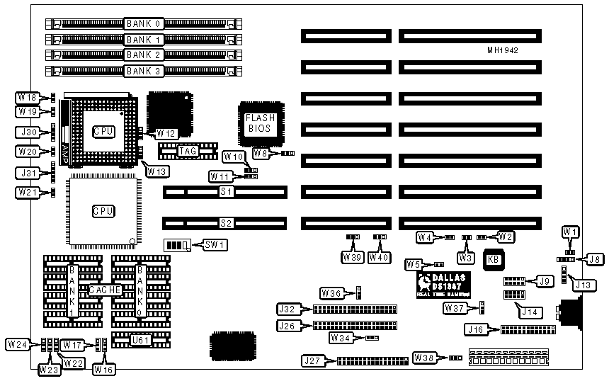 Note:If Write-Through caching is not being used, the chip at U61 is not installed. | ||||