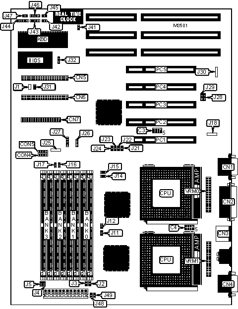Note: Board accepts BEDO/EDO memory. Board also accepts x 36 SIMMs.