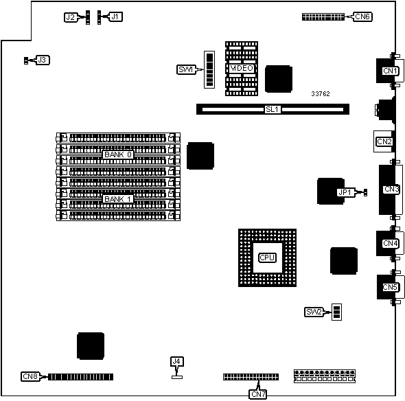 Note: The location of banks 0 & 1 are unidentified. The size of the video memory chips are unidentified. | ||