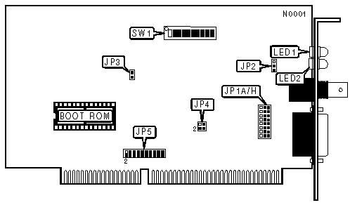 Note: If the card is on either end of a linear bus network segment, the onboard terminator may be used instead of using an external terminator. |