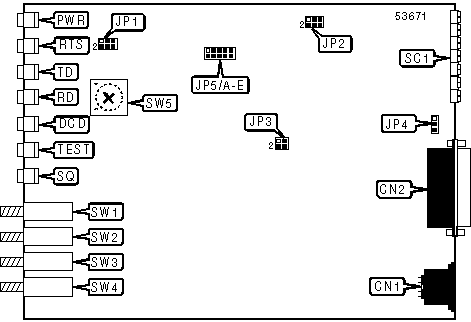 Note:Modem can be made to perform self-test by holding down SW2 and SW4. The DCD, TEST, and SQ LEDs should go on, and the RD LED should go off. | |||